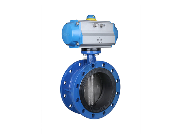 水用气动蝶阀,Pneumatic butterfly valve for water,也叫气动水用蝶阀,是指用于各种水介质的开关或者调节的蝶阀,由188彩票KNKE气动执行器和软密封的法兰蝶阀组成,气动执行器驱动阀杆对蝶阀实现开启和关闭的阀门,可以实现远程智能控制和开关调节。气动法兰蝶阀由角行程气动活塞式执行器及蝶阀阀体组成,采用三维偏心原理设计,使密封面的空间运动轨迹达到理想化,密封面相互之间无磨擦、无干涉、加之密封材料选择得当,从而使蝶阀的密封性、耐腐蚀性、耐高温性和耐磨性等得到了可靠的保证。气动法兰蝶阀开启力矩小,灵活方便,省力节能。