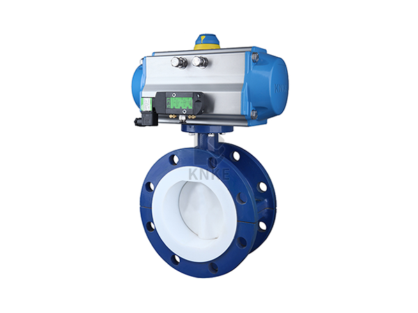 气动法兰衬氟蝶阀有弹密封和金属的密封两种密封型,弹性密封阀门,密封圈可以镶嵌在阀体上或附在蝶板周边
