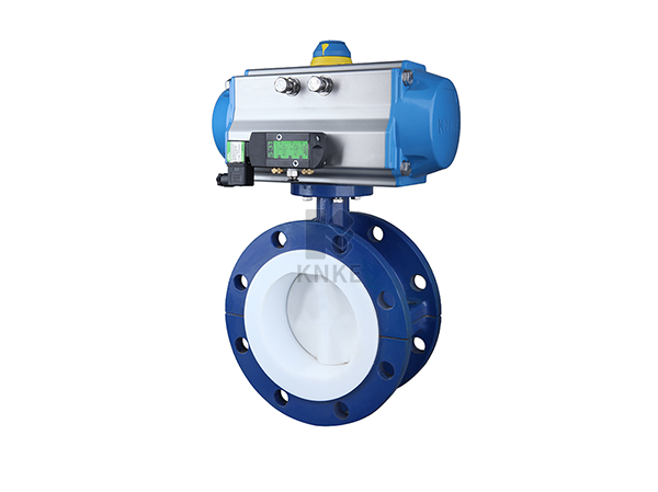进口气动软密封法兰蝶阀,Pneumatic soft seal flange butterfly valve,由188彩票KNKE气动执行器和软密封的法兰蝶阀组成,气动执行器驱动阀杆对蝶阀实现开启和关闭的阀门,可以实现远程智能控制和开关调节。气动法兰蝶阀由角行程气动活塞式执行器及蝶阀阀体组成,采用三维偏心原理设计,使密封面的空间运动轨迹达到理想化,密封面相互之间无磨擦、无干涉、加之密封材料选择得当,从而使蝶阀的密封性、耐腐蚀性、耐高温性和耐磨性等得到了可靠的保证。气动法兰蝶阀开启力矩小,灵活方便,省力节能。