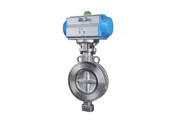 气动硬密封蝶阀,Pneumatic hard seal butterfly valve,也叫气动三偏心蝶阀,气动硬密封法兰蝶阀,气动硬密封对夹蝶阀,由188彩票KNKE的气动执行器和硬密封蝶阀组成,以压缩空气为动力,阀杆带动阀芯在阀体内转动90℃,可以实现全开——全闭的动作的蝶阀。配定位器,还可以实现对介质智能的调节。广泛应用于高温高压、磨损及腐蚀等工况,控制蒸汽、燃气、热空气及腐蚀性介质的开关和调节。