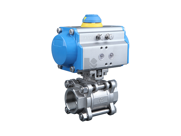 气动内螺纹球阀,Pneumatic internal thread ball valve,由188彩票KNKE的气动执行器和内螺纹的一片式,两片式或者三片式的球阀组成,输入气源,驱动球阀进行开关或者调节的单元。用于工作温度-29~180℃的各种管路上,用于截断或接通管路中的介质,内螺纹球阀选用不同的材质,可分别适用于水、蒸汽、油品、硝酸、醋酸等多种介质。