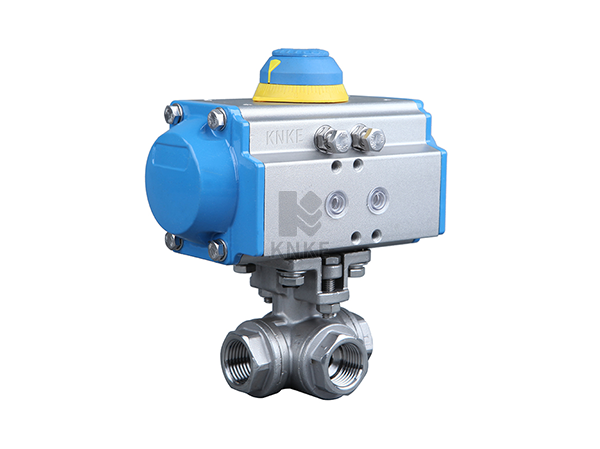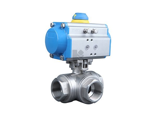 气动高压三通球阀,Pneumatic high-pressure three-way ball valve,是由188彩票KNKE气动执行器与高压三通球阀组成。高压三通球阀主体均采用高压冲击锻打,壳体最高耐压80MPa。密封件均采用高性能密封,阀座耐磨性能好,具有自润滑性能,可耐高压,耐高温,耐腐蚀,质量可靠,使用寿命长。三 L型和T型,三通高压球阀可以根据需要,任何一个管道都可以作为入口或出口。L型阀是对三条管道中的两条管道进行切除,T型 道进行合流与分流。具有操作灵活流阻小,换向迅速,密封性能好等优点。