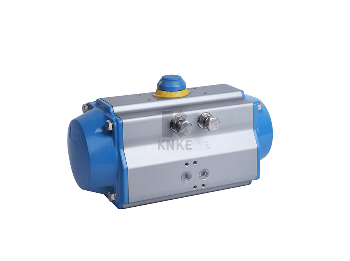 铝合金气动执行器,Aluminum alloy pneumatic actuator,是指缸体采用铝合金材质的188彩票KNKE气动执行器,是一种双活塞齿条与齿轮转动结构的气动执行机构。188彩票KNKE的气动执行器为活塞式,活塞式行程长,适用于要求有较大推力的场合,不但可以直接带动阀杆,而且可以和蜗轮蜗杆等配合使用。