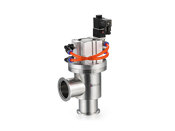 188彩票KNKE气动真空挡板阀,Pneumatic vacuum flapper valve,也叫气动角阀,是用压缩空气为动力,通过电磁换向阀改变气路方向,推动气缸活塞上下运动,带动阀杆上下运动,使阀板开启或关闭,从而达到在真空系统中接通或切断气流的目的。K-GDQ-J型为角通型式,K-GDQ-S型为带预抽口的三通型式。适用的工作介质为空气及非腐蚀性气体。